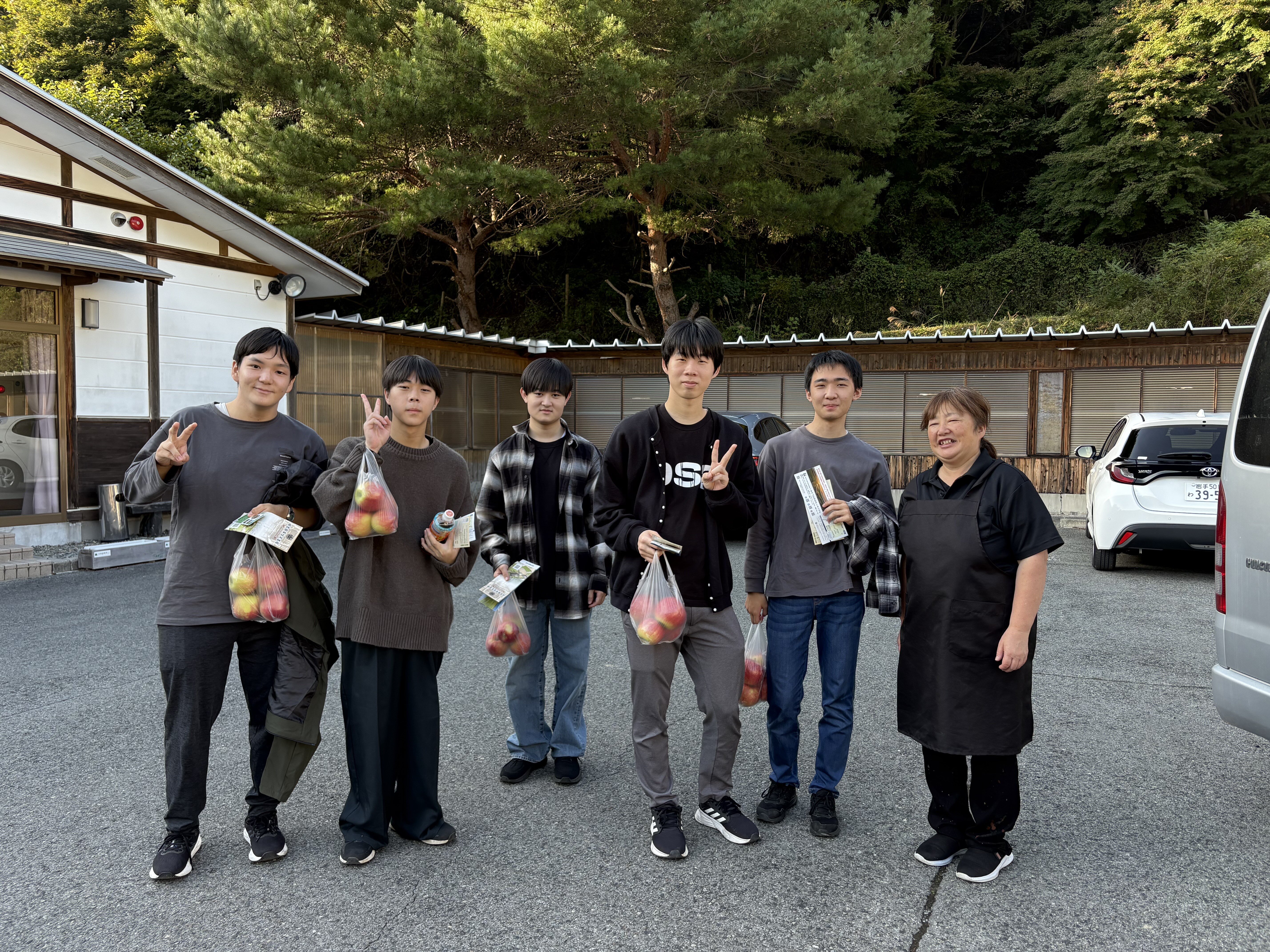 その後陸前高田に移動し、民泊の入村式を皮切りに1泊2日の民泊をスタートしました。「奇跡の一本松」の資料館訪問や、果樹園のお手伝い、川での鮎釣りなど、それぞれ充実した時間を過ごせたようです。