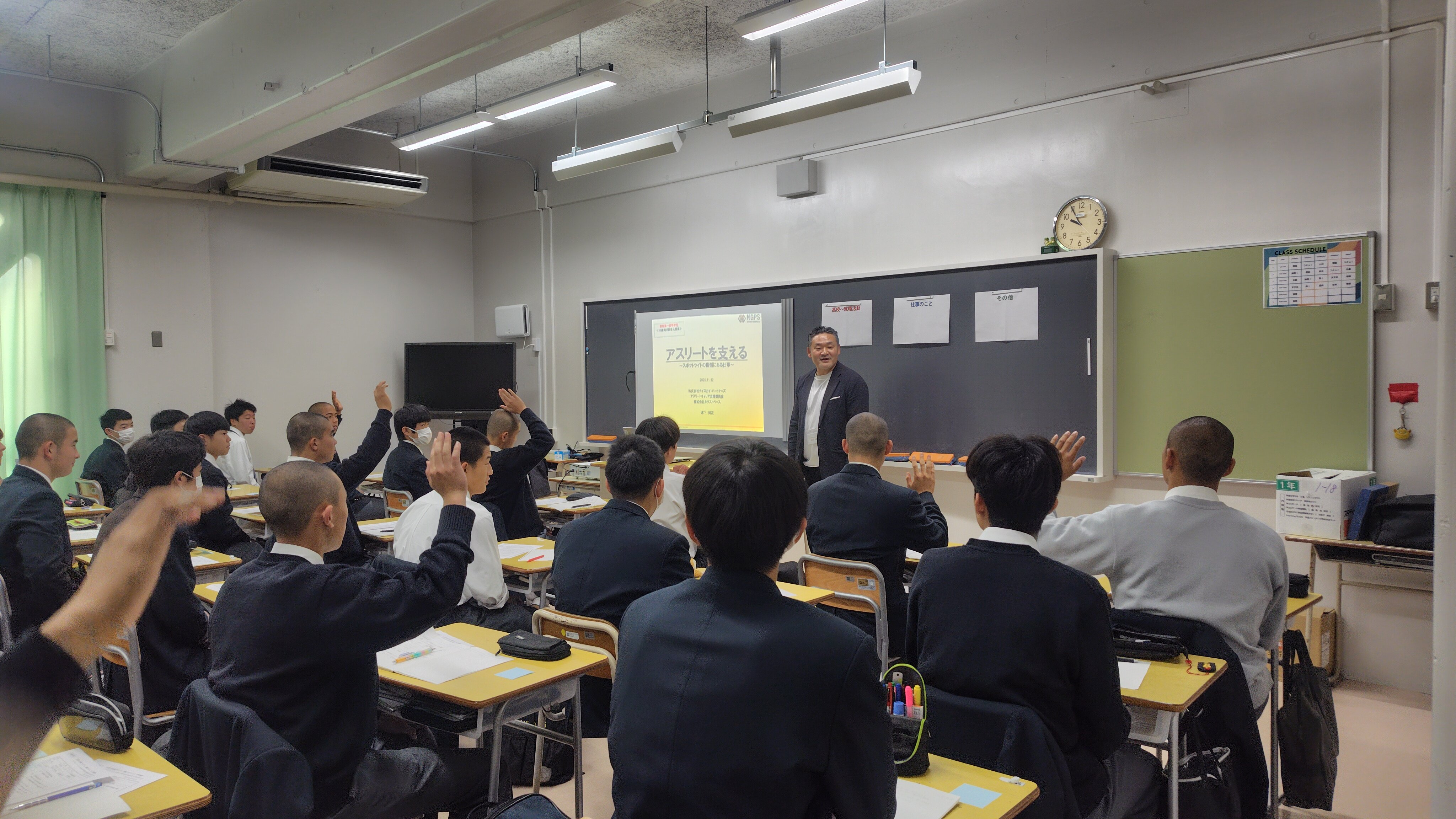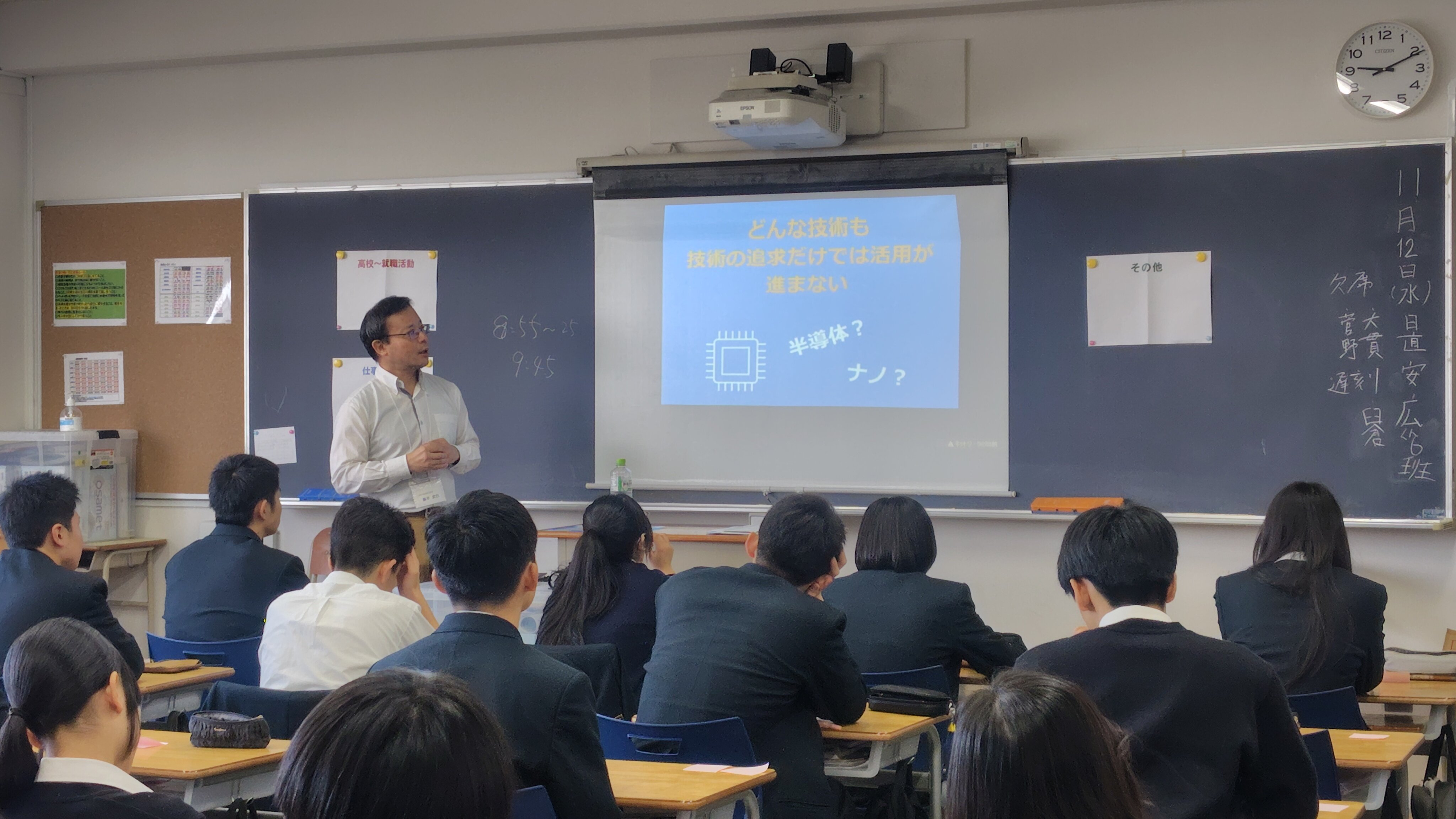 未来へはばたく皆さんの真剣な眼差しに感動しました。特に、授業後に提出してくれた質問カードの熱量は忘れられません。時間の制約上、すべての質問にお答えできなかったことが心残りであり、大変申し訳なく思っています。しかし、その一つひとつの質問が、皆さんがどれほど真剣に将来と向き合っているかの証明でした。