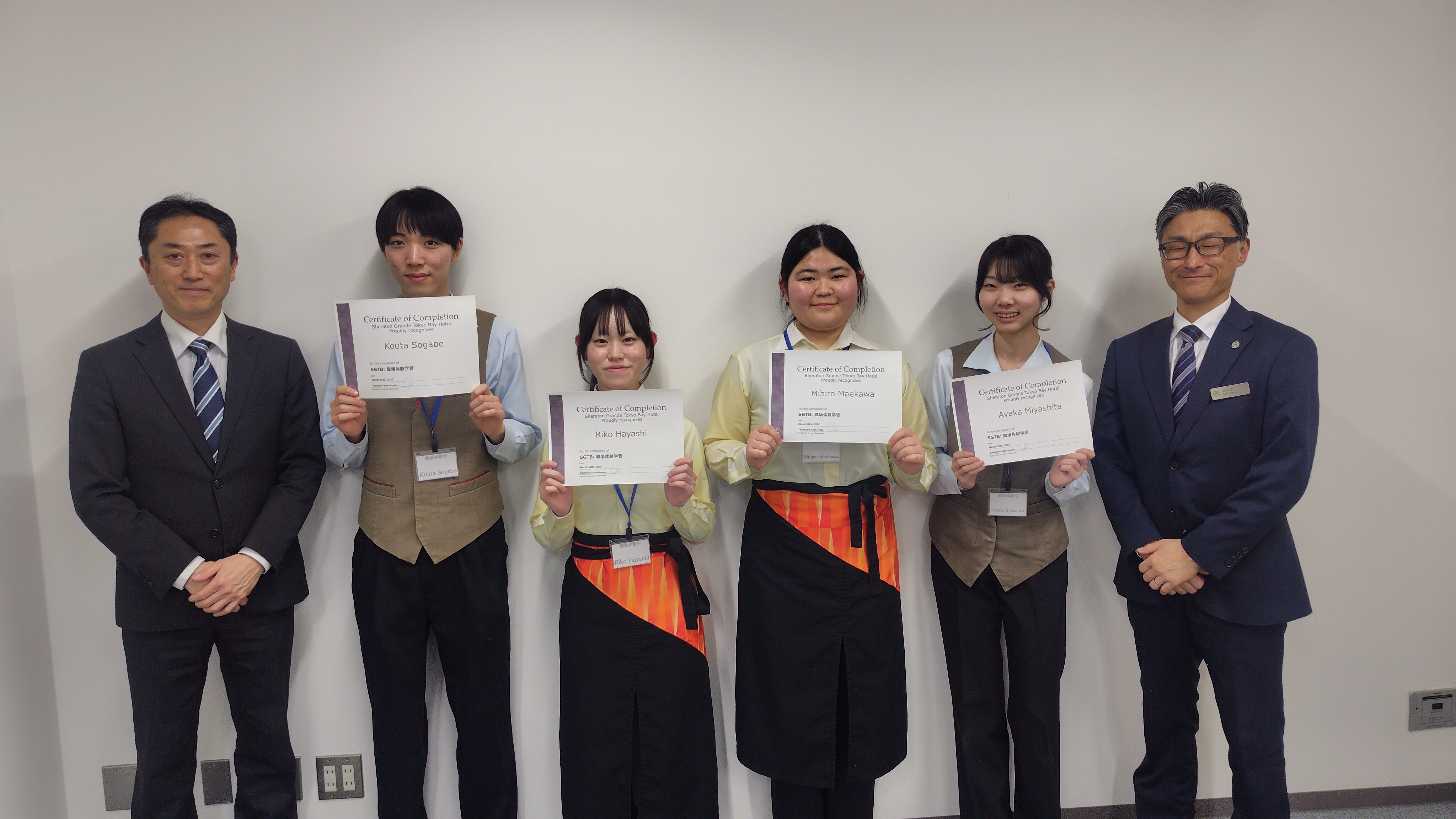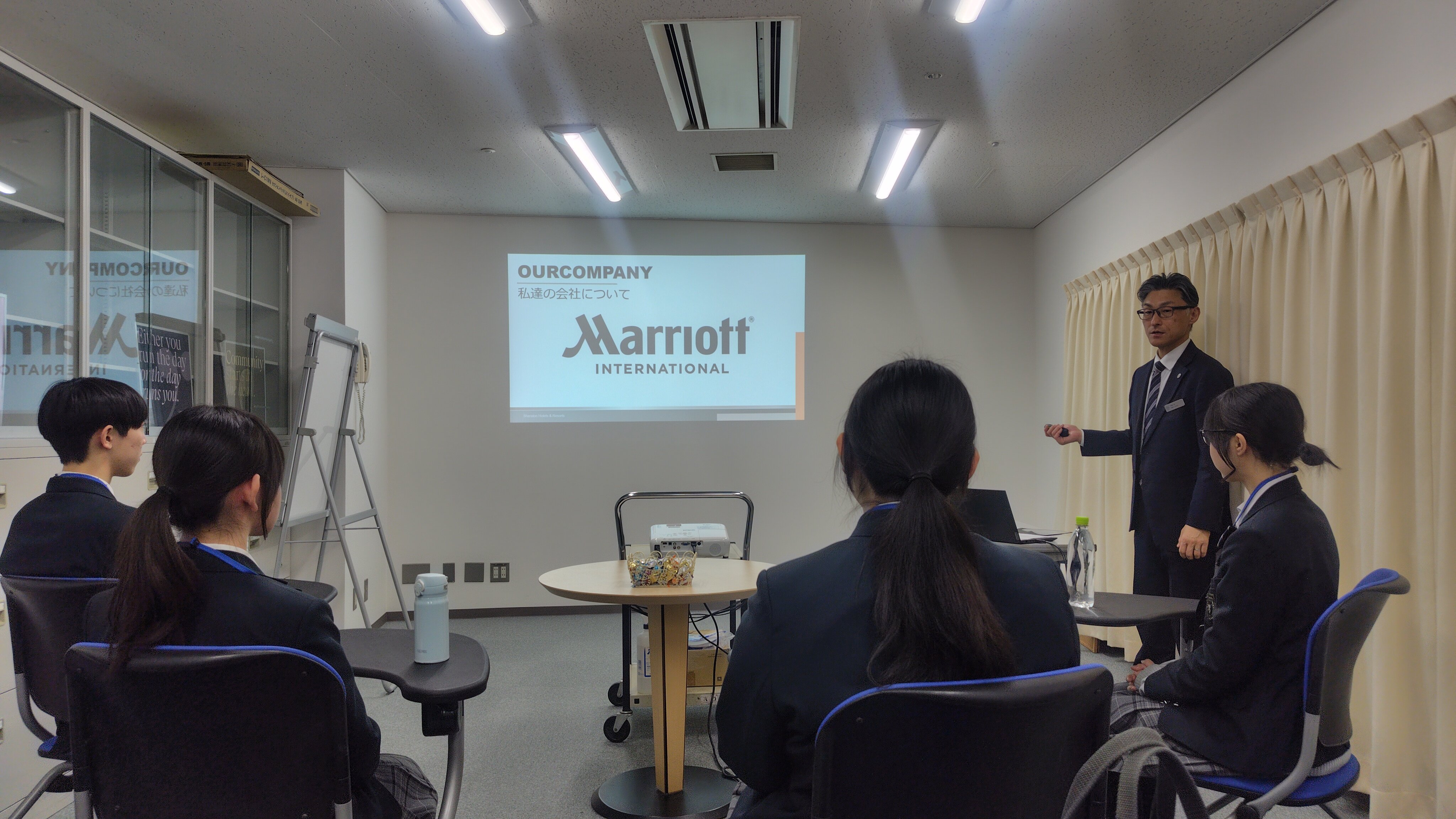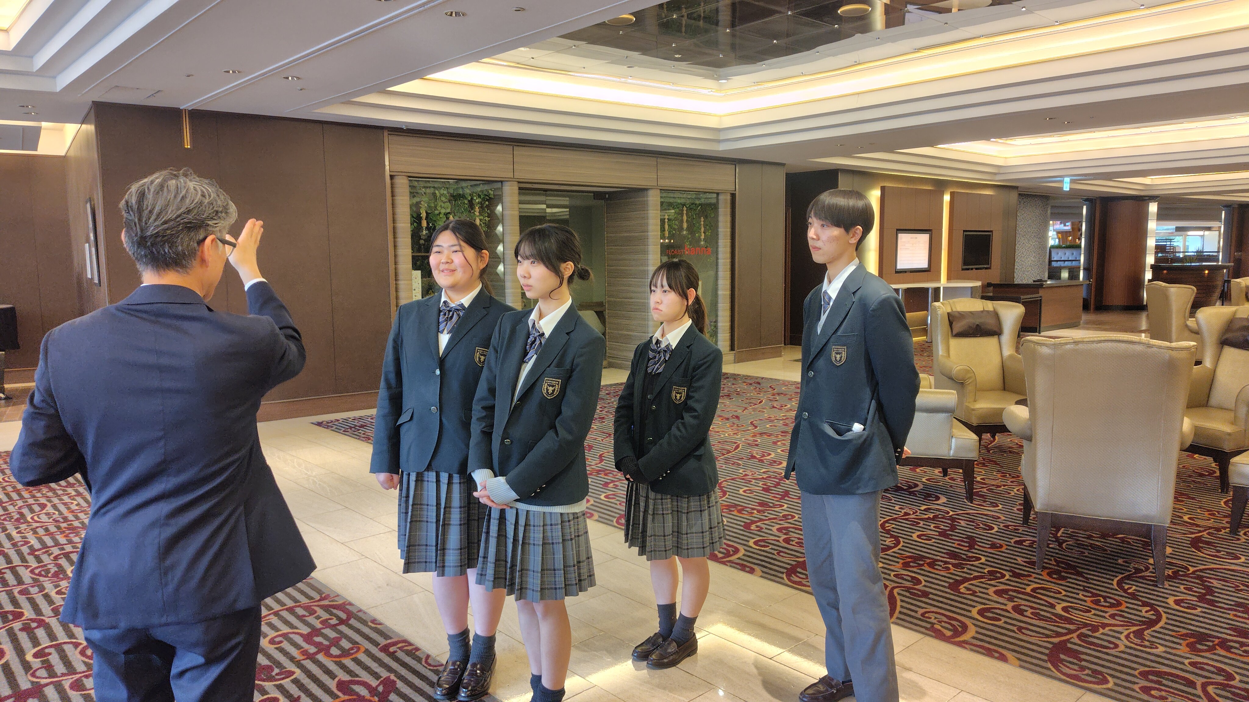 3月10日、舞浜にあるシェラトン・グランデ・トーキョーベイ・ホテルに御協力いただき、インターンシップを行いました。今回はホテリエ(ホテルで働くスタッフ)に関心のある2年生4名の参加。午前中は「Best Smiles For You」を企業理念に掲げるシェラトンの歴史から、ホテルが目指すものなど、人材開発担当の相馬様(本校卒業生)から講義いただきました。午後はホテル見学、そしてシェラトンの制服に着替え、2チームに分かれベルスタッフとレストランでの就業体験。1日の中で多くのことを学ばせていただきました。<進路指導部>