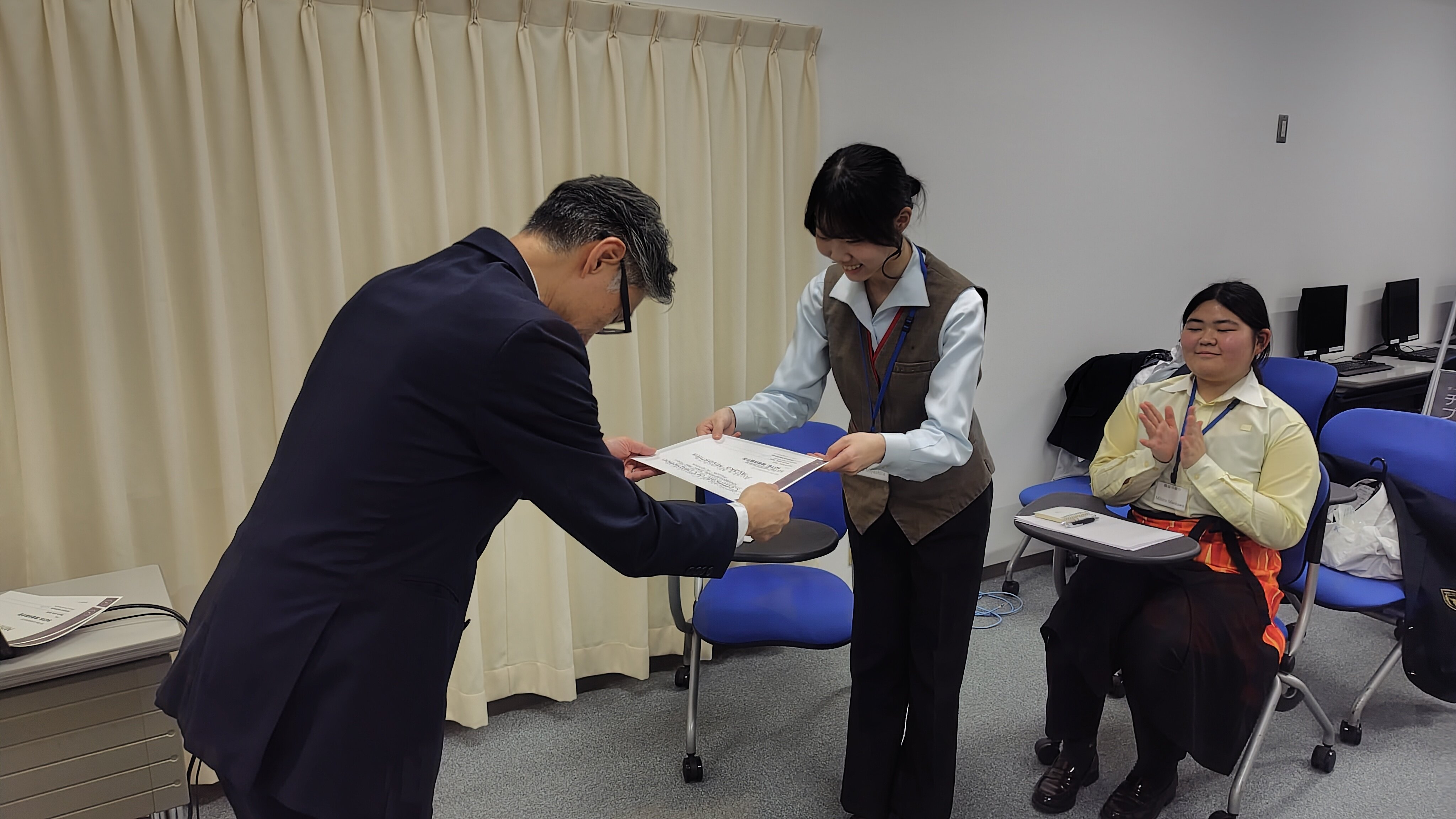 私がインターンシップに参加した理由は、世界中の人々と関われる仕事に興味があったからです。初めはホテルの仕事内容についてぼんやりとした知識しかありませんでしたが、研修でお客様への接し方や会社の理念などを教えていただき、仕事内容だけでなくホテルへの理解も深まりました。また、館内見学ではスタッフの方々のお客様への姿勢から、全ての動作に思いやりが込められていることに気づきました。私はホテル内のグランカフェで仕事体験をし、料理の温度ごとに調理スペースを分ける工夫や多国籍なお客様のニーズに合わせて多様な料理を提供していることを学びました。スタッフの方の「作る人も食べる人も楽しい場所」という言葉が印象に残り、働く人が楽しめる環境がお客様の満足につながっていると感じました。この経験から、おもてなしは国境を超えて人々を幸せにできると実感しました。学んだ思いやりや気遣いを活かし、笑顔と感謝を忘れず多くの人を幸せにしていきたいです。私がこのような貴重な体験をさせていただいたのは、ホテルの方々の受け入れ準備や当日の手厚いサポートのおかげだと強く感じています。